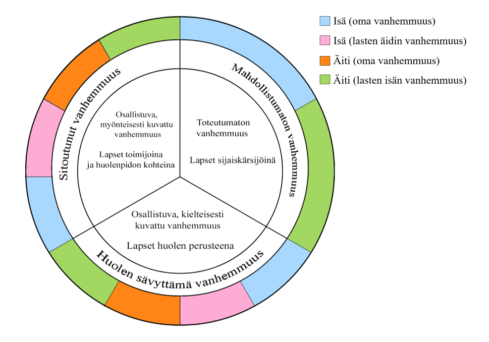 ”Kaikkien puhetapojen taustalla voidaan nähdä olevan halu olla hyvä vanhempi ja toive siitä, että myös lasten toinen vanhempi toimisi niin moraalisesti kuin kulttuuristen ihanteiden mukaan oikein.”
