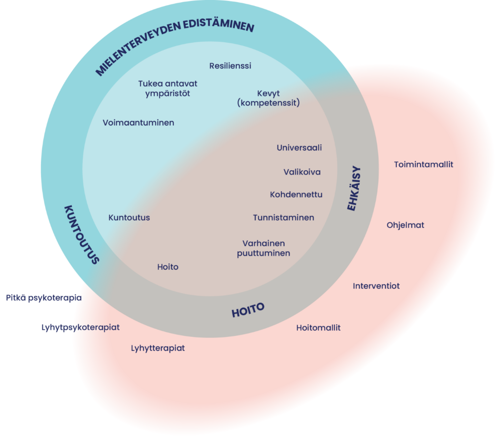 • mielenterveyden ja toimintakyvyn edistäminen (primaarinen ehkäisy, terveyden tuottaminen)