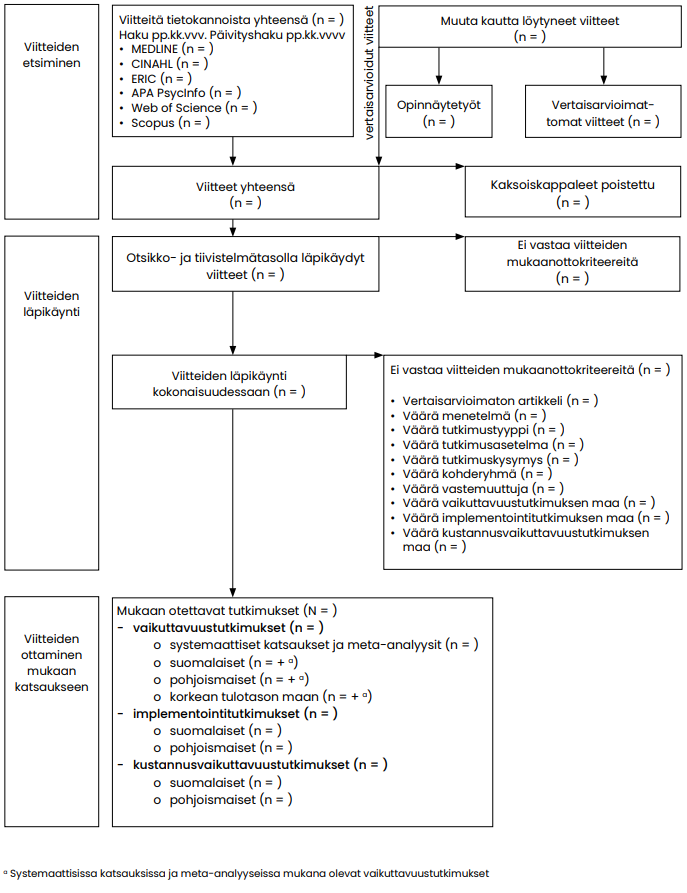 Tampereen yliopiston kirjasto. (24.3.2024). Systemaattinen tiedonhaku: Aloita tästä. Tampereen yliopisto. Haettu 15.11.2024 osoitteesta https://libguides.tuni.fi/systemaattinen-tiedonhaku