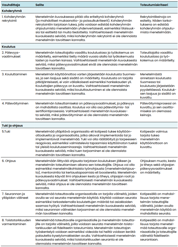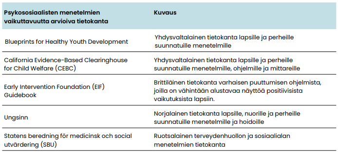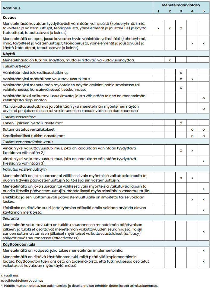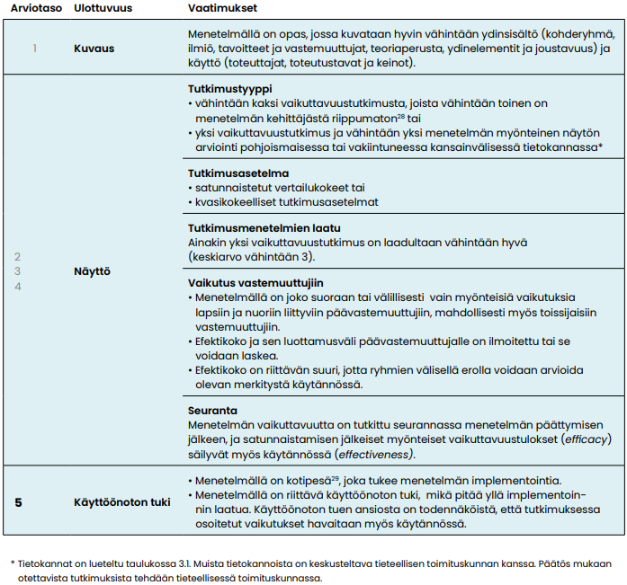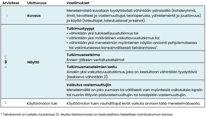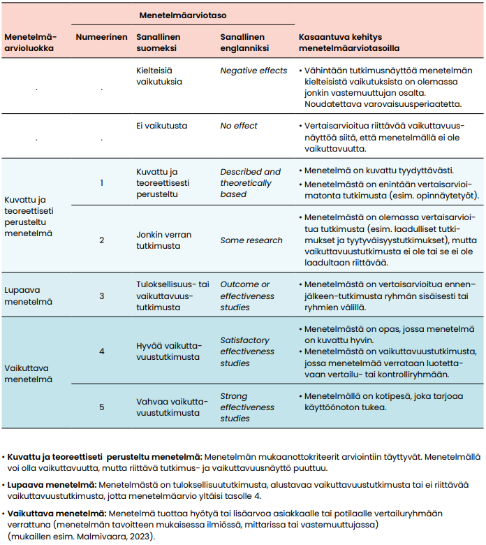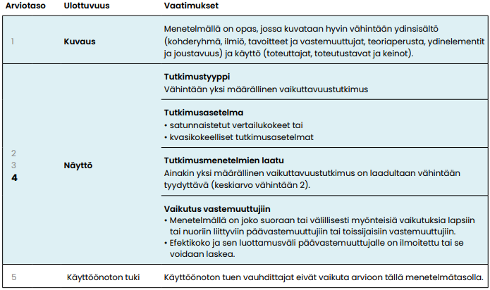 • näyttöön perustuva menetelmä4 (evidence-based intervention)