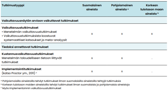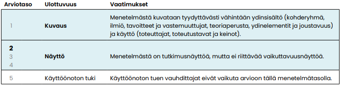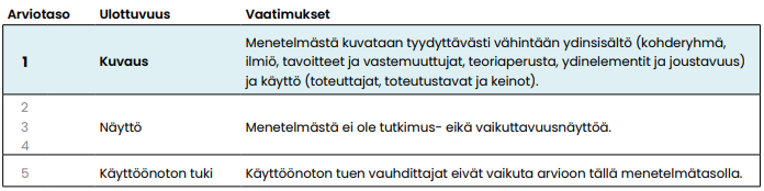 [5] Terminä interventiotutkimus on vakiintunut, joten käytämme sitä tässä arviointioppaassa, vaikka muutoin puhummekin interventioiden sijaan menetelmistä.
