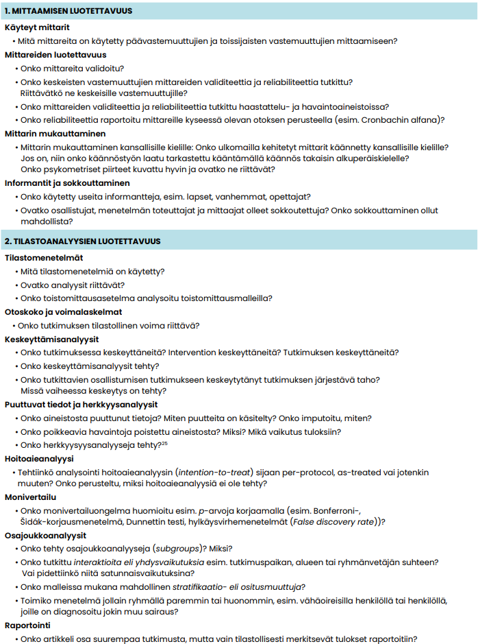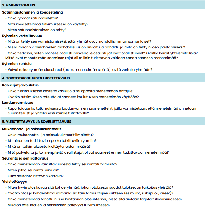 Malmivaara, A. & Komulainen, J. (2014). Luotettavaa vaikuttavuustietoa järjestelmällisistä katsauksista. Duodecim, 130, 1635–1641.