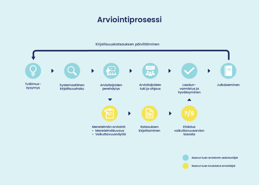 Kuvio: Kasvun tuessa arvioitavien menetelmien vaikuttavuuden arviointiprosessi.