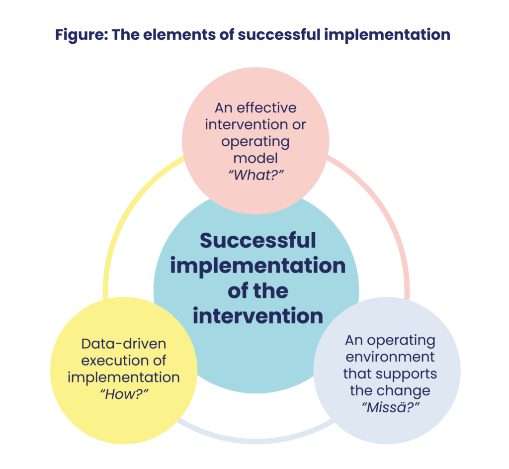Taking all three of these elements into account helps to achieve the broader objectives set for implementation, such as better mental health for children and adolescents, or more societally effective services.