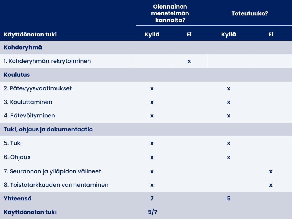 Millaista tukea menetelmän käyttöönottoon tarjotaan?